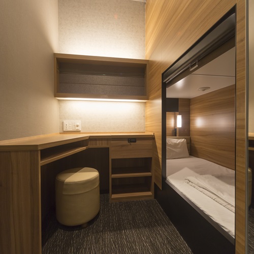 各部屋プライベートスペース付きで、カプセルホテルでありながら個室感覚で滞在できます。